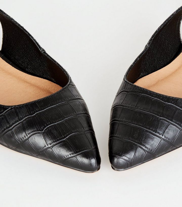 Flache Spitze Slingbacks In Schwarz Und Kroko Optik New Look