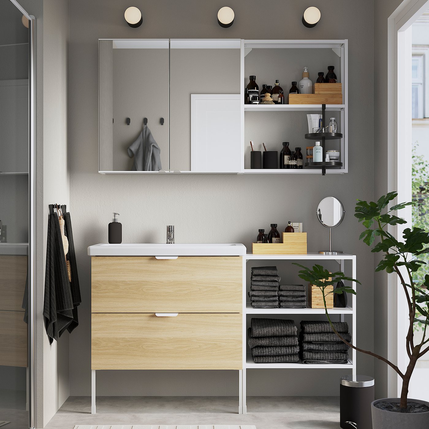 Enhet Tvallen Badezimmer Set 15 Tlg Eichenachbildung Weiss Pilkan Mischbatterie Ikea Deutschland