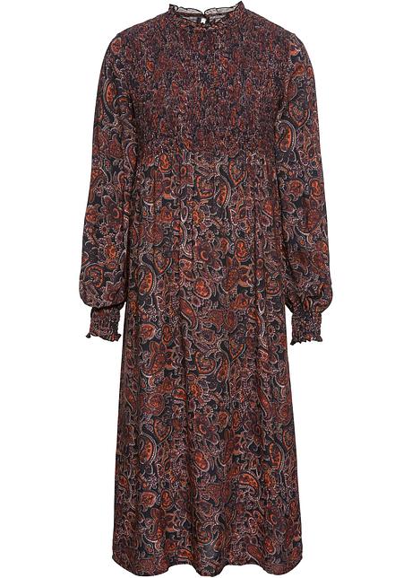 Modisches Kleid Mit Smok Einsatzen Schwarz Dunkelorange Bedruckt