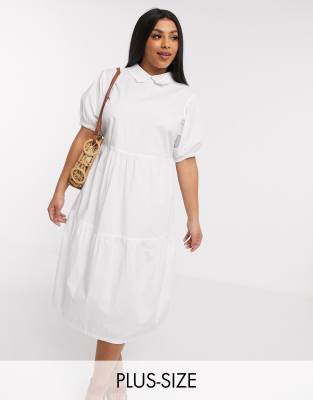 Daisy Street Plus Wadenlanges Hangerkleid Mit Stufenrock Und Puffarmeln Aus Baumwolle Evesham Nj