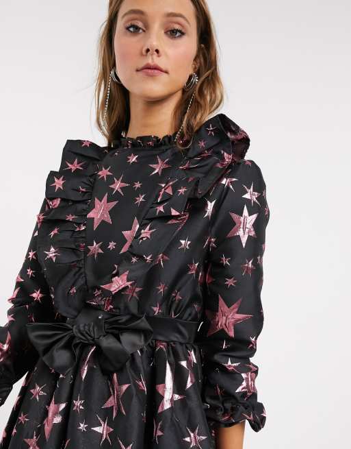 Sister Jane Vorn Gerafftes Wadenlanges Kleid Mit Bauschigem Rock Und Jacquard Sterndesign Asos