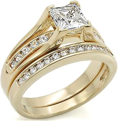 Damen Ring Set Verlobungs Und Ehering Diamant Synthetisch Prinzessschliff 6 Mm Hochwertiges Schmuck Set 24 Karat Vergoldet Elektroplattiert Amazon De Schmuck