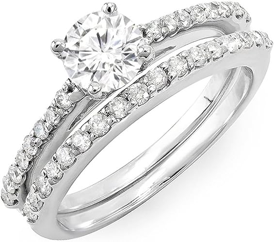 Kleine Schatze Damen Ring Ehering 1 9 Karat 14 Karat Weissgold Rund Diamant Damen Verlobungsring Ehering Set Amazon De Schmuck