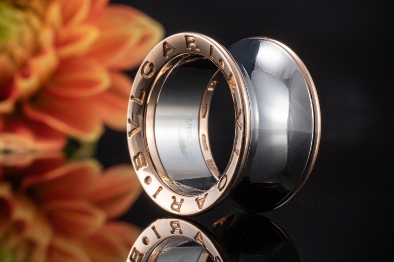 Breiter Bulgari Ring Bvlgari Mit Edelstahl Und 750er Rotgold Grosse 53