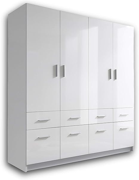 Rauch Kleiderschrank 4 Turig Mit Stangengriffen Front Hochglanz Weiss Breite 181 Cm Drehturenschrank Amazon De Kuche Haushalt