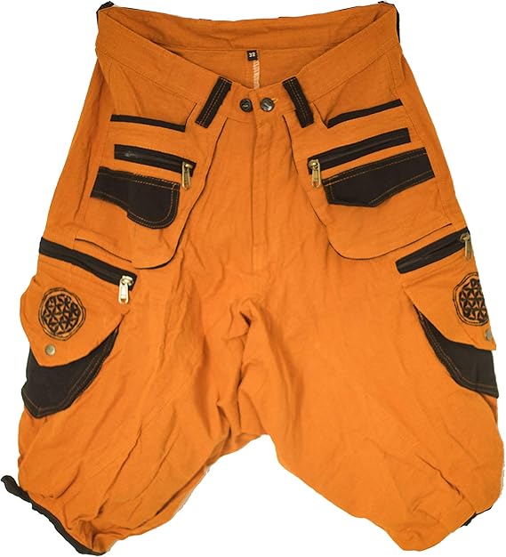 Imzauberwald Imzauberwald Braune Goa Shorts Mit Blume Des Lebens In Schwarz Kurze Hose Mit Vielen Taschen Grossenverstellbar Dank Zwei Knopfen Gemutlich Und Praktisch Shorts Amazon De Bekleidung