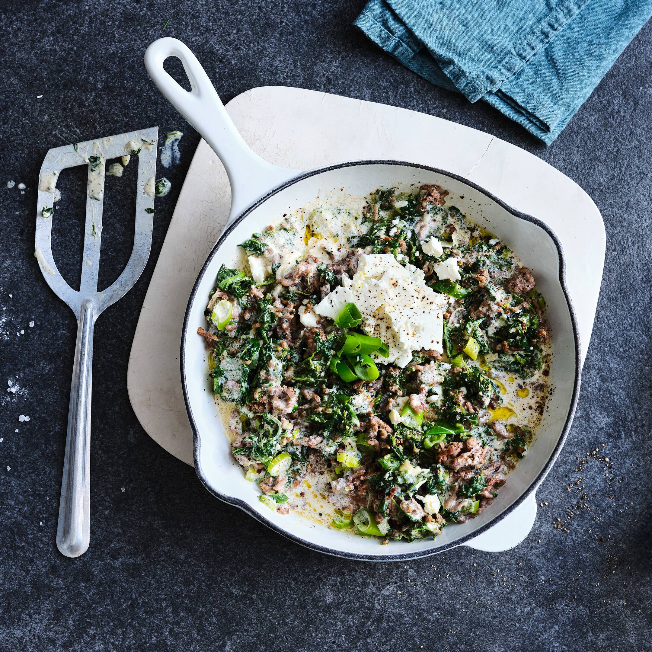 Spinat Hack Pfanne Mit Hirtenkase Rezept