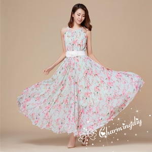 110 Farben Doppelt Seite Kleid Chiffon Grun Rosa Blume Tee Etsy