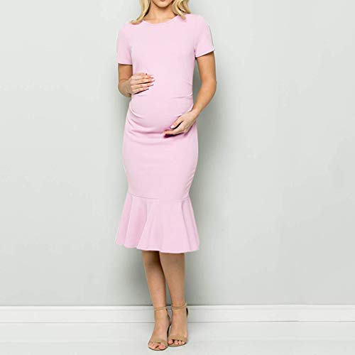Erroten Rosa Ruschen Ruckenfrei Meerjungfrau Party Umstandskleid Umstandskleider Frauen Mutterschaft