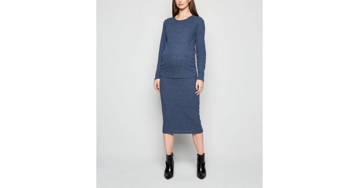 Umstandsmode Marineblauer Gerippter Midirock New Look