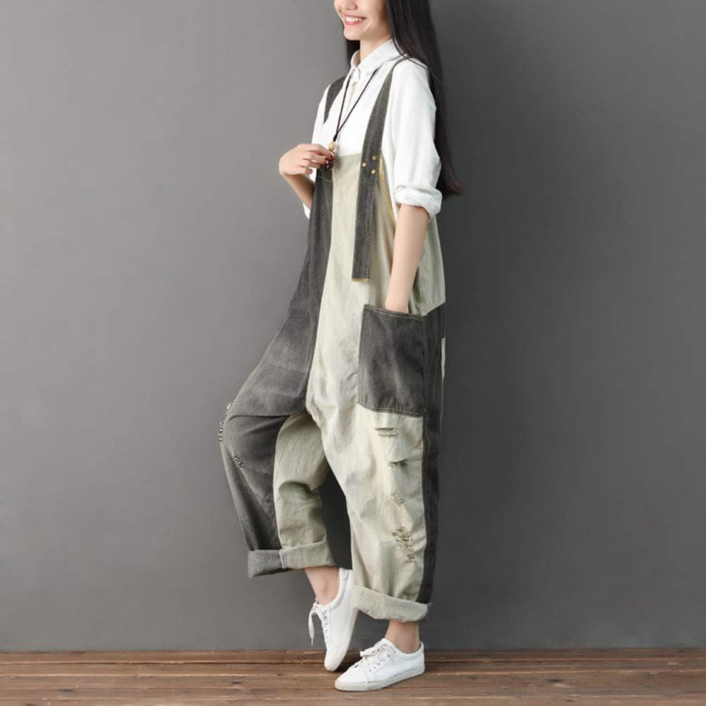 Yuandian Damen Latzjeans Weites Bein Grosse Grossen Denim Latzhose Overalls Strampler Jeans Boyfriend Loose Fit Umstands Schwangerschaft Ubergrosse Jumpsuits Hose
