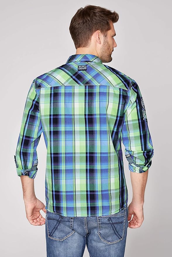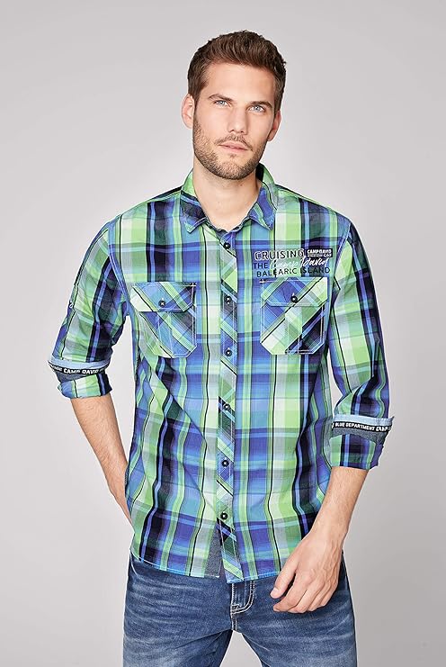 Camp David Herren Langarmhemd Mit Neon Karo Und Taschen Amazon De Bekleidung