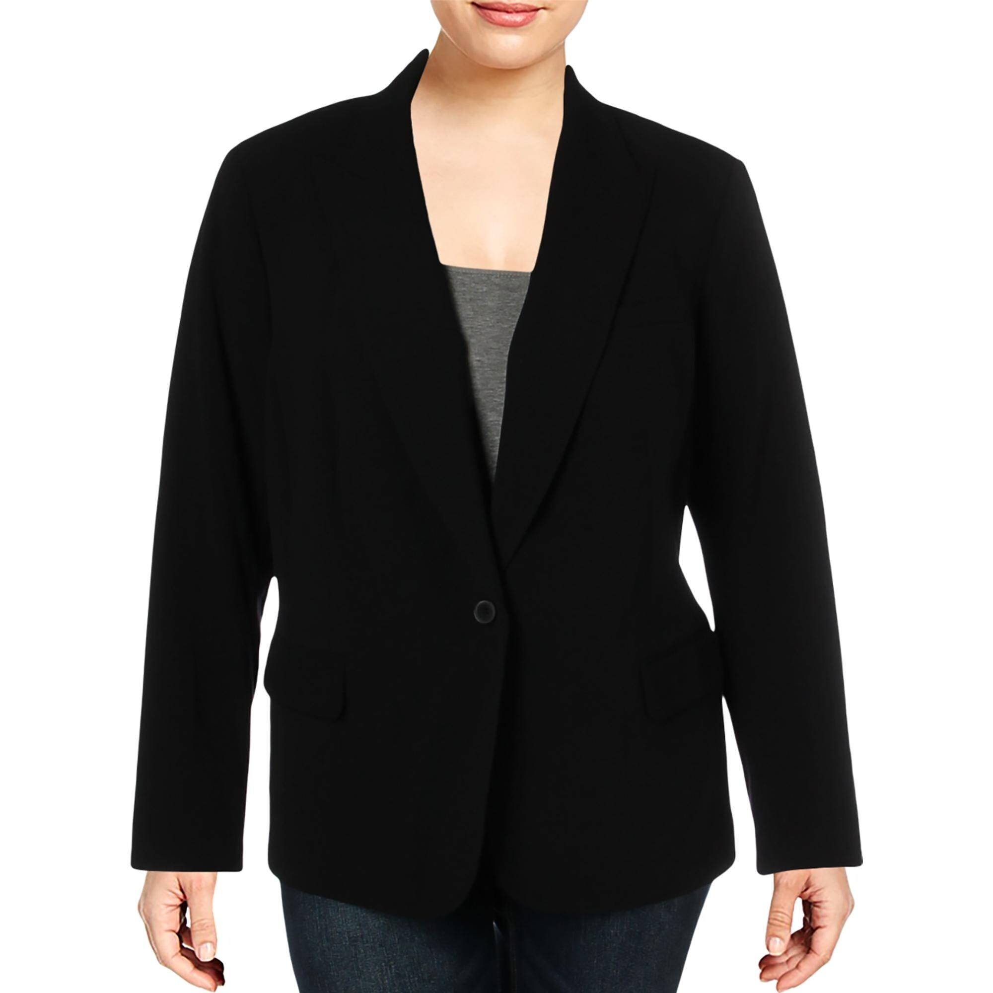 Anne Klein Womens Plus One Button Blazer Business Professional Black w Overstock