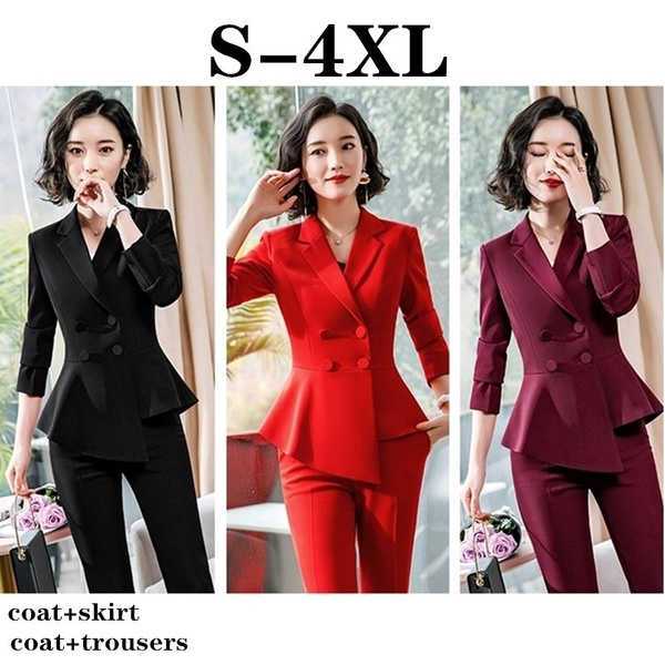 New Styles 19 Spring Autumn Formal Business Suits With Jackets And Pants Skirt Novelty Black Red Wine Professional Ladies Office Work Wear Female Blazers Trousers Sets Career Interview Job Clothing Sets Plus Size