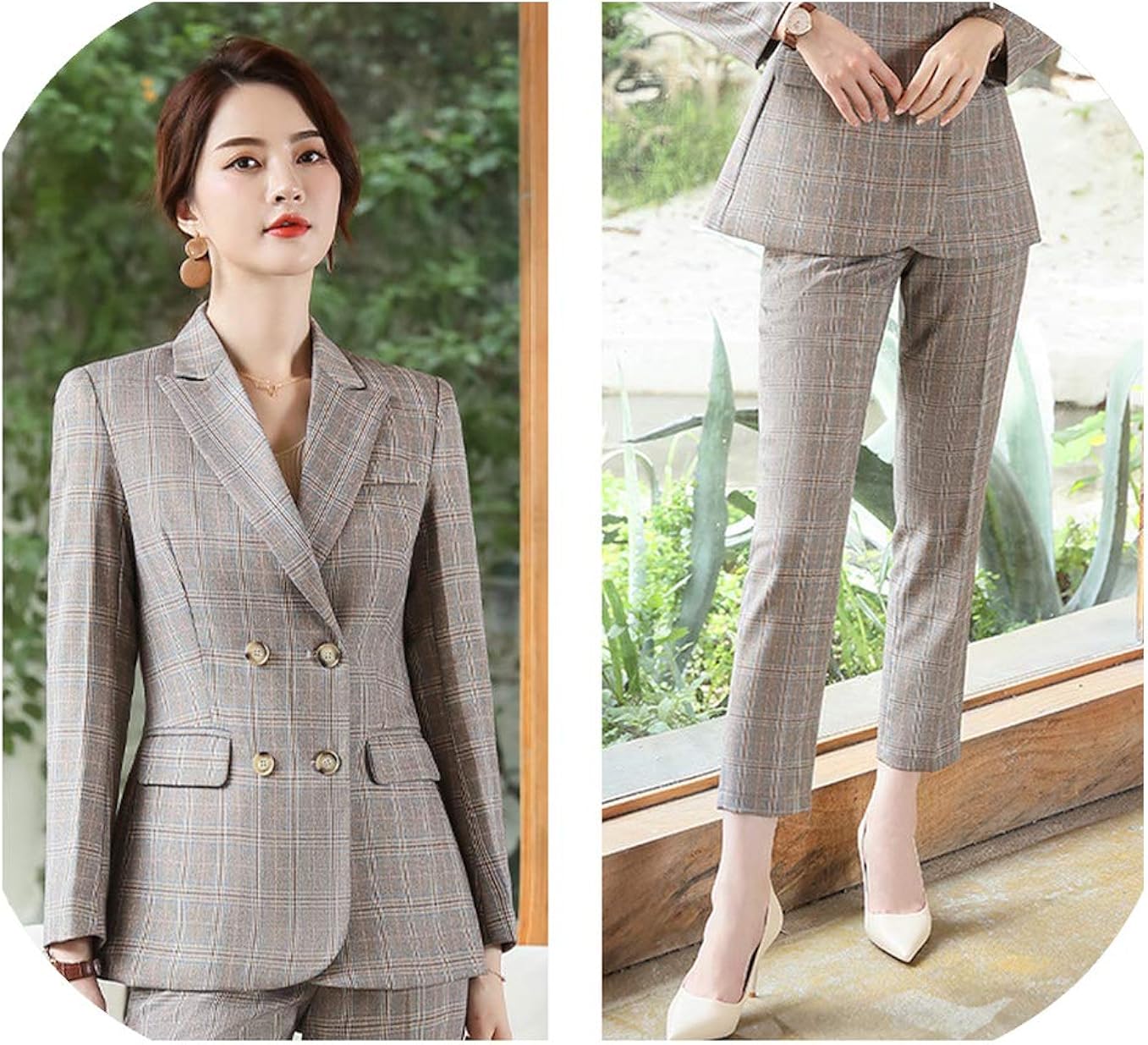 Winter Business Professional Women Suit Temperament Double Breasted Plaid Suit Jacket Sets A 4xl At Amazon Women S Clothing Store