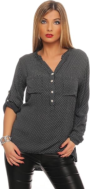 Mississhop 153 Damen Gepunktete Bluse Hemd Mit Punkte Muster Langarm Shirt Top Longshirt Oberteil Schwarz Amazon De Bekleidung