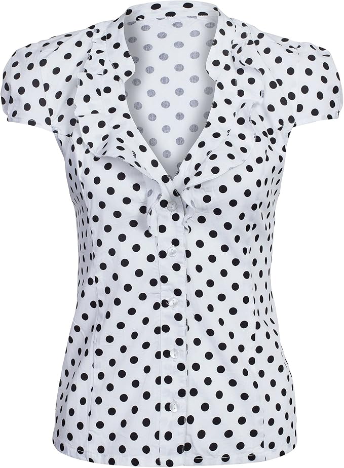 Gepunktete Bluse Hemdbluse Mit Ruschen Volants Polka Dots Weiss Schwarz Xs S M L S Weiss Schwarz Amazon De Bekleidung