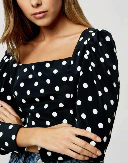 Miss Selfridge Schwarz Und Weiss Gepunktete Bluse Mit Eckigem Ausschnitt Asos