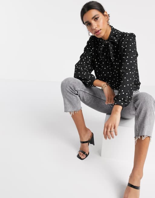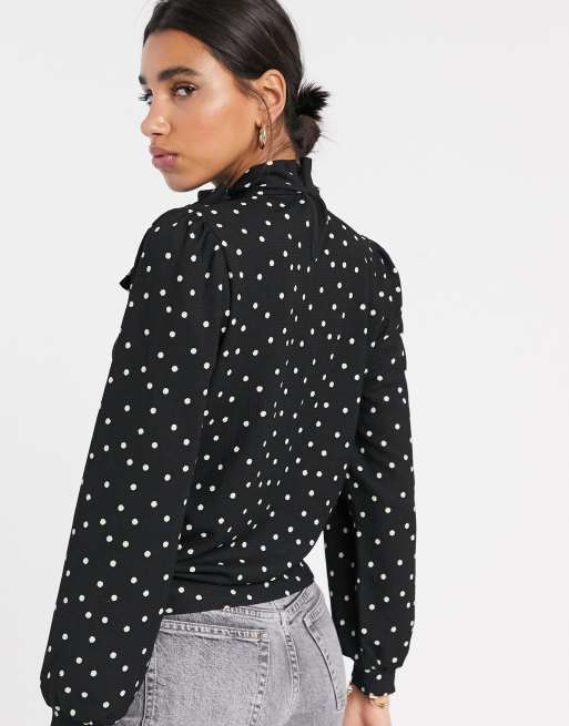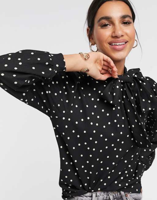 Vero Moda Schwarzweiss Gepunktete Bluse Mit Voluminosen Armeln Und Schluppe Asos