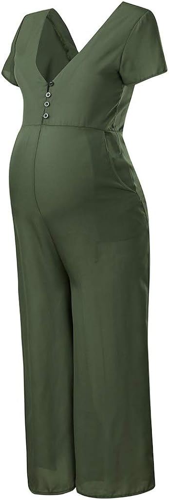 Ucoolcc Umstandsmode Damen Umstandsoverall Jumpsuit V Ausschnitt Elegante Overall Umstandshose Straight Locker Playsuit Button Up Hose Fur Schwangere Bekleidung Schlafanzughosen