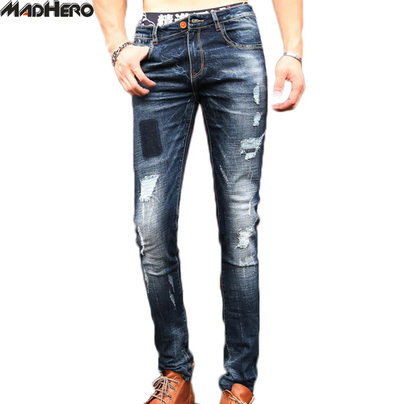 Madhero Zerrissenen Jeans Mit Lochern Top Qualitat Baumwolle Spandex Denim Hosen Manner Schwarze Beilaufige Dunne Jeans Mannlichen Zerrissen Hosen Skinny Jeans Male Jeans Maleripped Jeans Aliexpress
