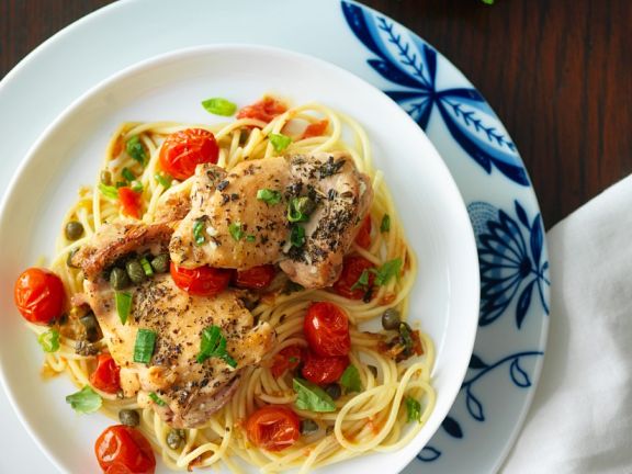 Hahnchen mit nudeln. Liatelle unter den Spinat mischen und die SpinatNudeln auf Teller verteilen Das HähnchenPiccata darauf anrichten und mit dem BasilikumTomatenSalat servieren Guten Appetit!. Tomatennudeln mit Hähnchen Zwiebeln, Knoblauchzehen, Hähnchenbrustfilets, Linguine, Öl, Tomatensaft, Salz, Zucker, getrocknete italienische Kräutern. Wichtig Verwenden Sie nur die original, indonesische süße Sojasauce auch als Kecap Manis bekannt Diese Sauce ist dick, süß und enthält fast kein Salz.