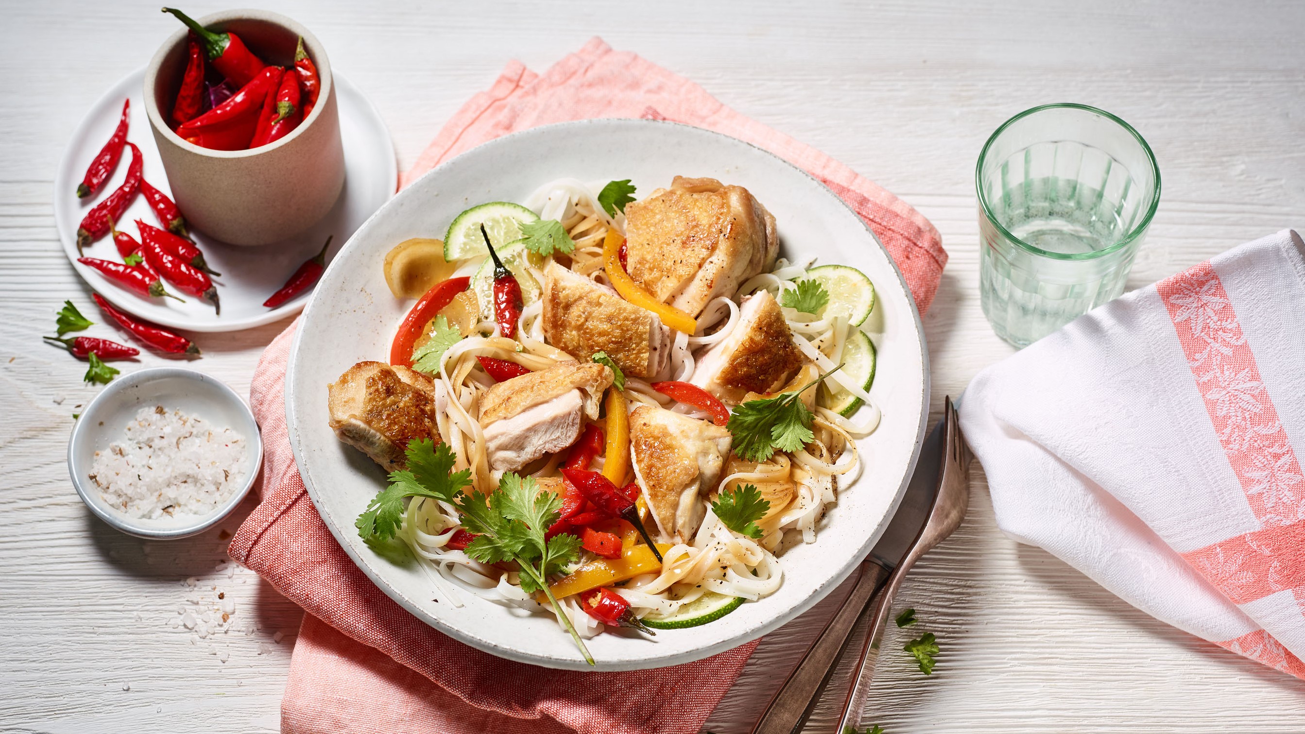 Thai Pfanne Mit Hahnchen Und Mie Nudeln Rezept Kochbar De