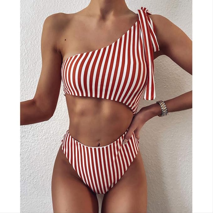 Rotes Weisse Gestreifte Ruckenfreie Einteiler Strand Badeanzuge Sommer Bademode Badebekleidung Damen Bademode Oberteile