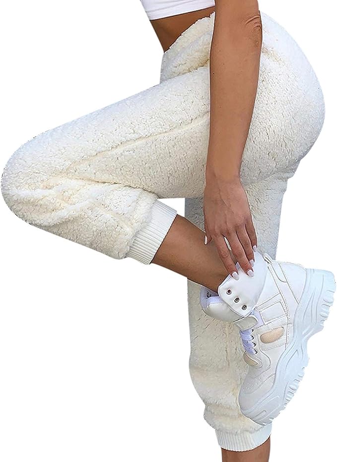 Ansenesna Damen Hose Fleece Plusch High Waist Elegant Winter Hosen Frauen Elastischer Bund Karottenhosen Lang Hoher Bund Einfarbig Freizeithose Amazon De Bekleidung