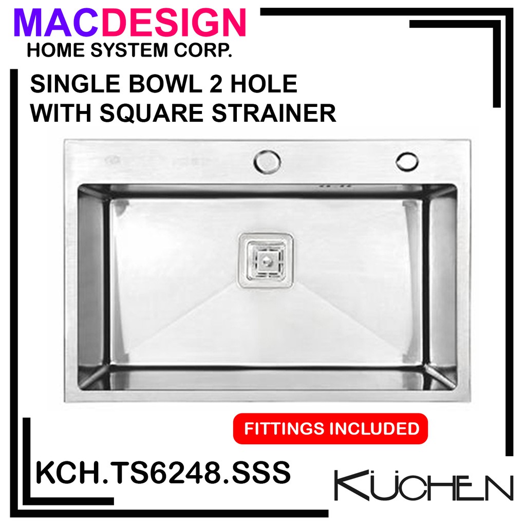 Kuchen Kch Ts6248 Sss Single Bowl 2 Hole With Square Strainer Kitchen Sink 6 X 480 X 228mm Shopee Philippines