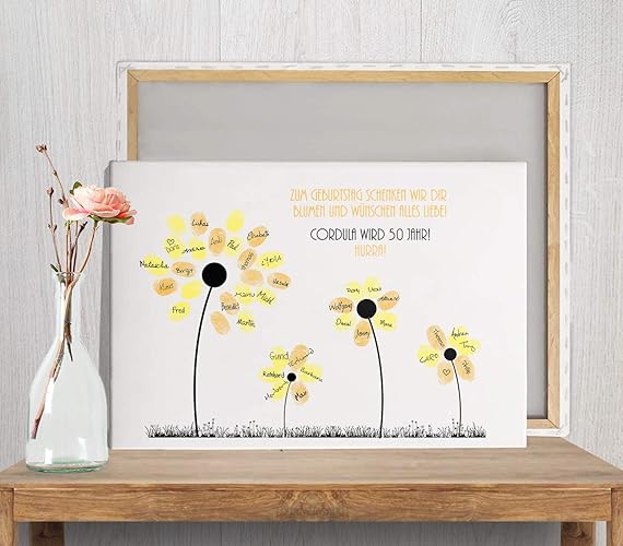 Geburtstag Fingerabdruck Bild Mit Blumen Fur Fingerabdrucke Gastebuch Idee Papier Leinwand Amazon De Handmade