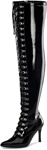 Lack Weitschaft Schwarz Overkneestiefel Schnurung Stiletto