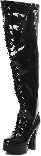 Kassiopeya Handel Mit Texitilien Hartwaren Lack Overknee High Heels Schwarz Mit Schnurung Oben Extra Weit