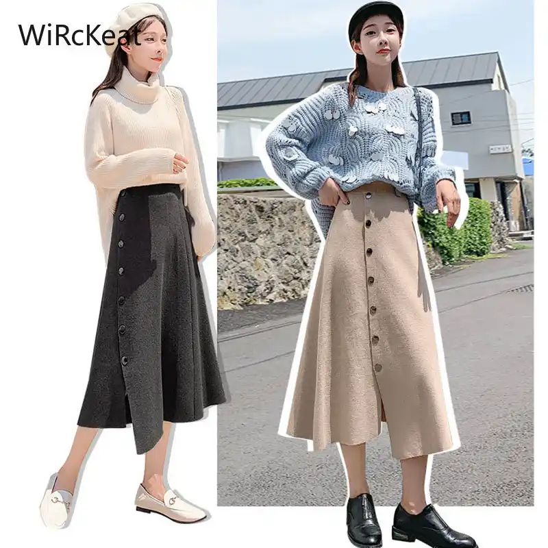 Gestrickte Lange Rock Frauen Winter Hohe Taille Asymmetrische Stricken Rocke Frauen Taste Eine Linie Gestrickte Frauen Rocke Fur Frauen Rocke Aliexpress