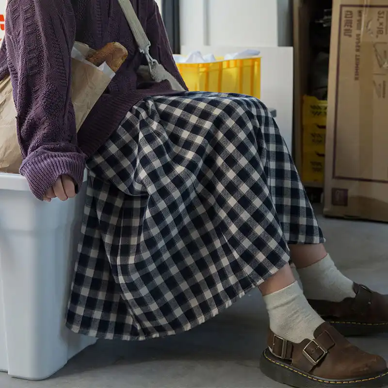 Vintage Plaid Gefaltete Lange Rocke Hohe Taille Winter Frauen Koreanische Woolen Rock Streetwear Kordelzug Elastische Taille Midi Rock Rocke Aliexpress