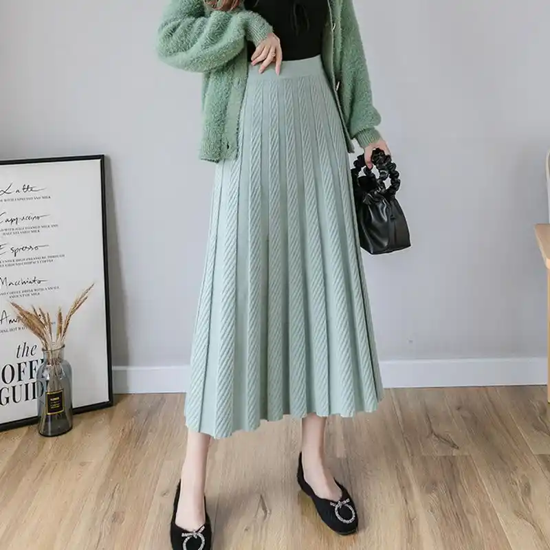Bygouby Lange Frauen Stricken Maxi Rock Herbst Winter Warme Drapieren Weiche Strick Rock Hohe Taille Eine Linie Plissee Rocke Rocke Aliexpress
