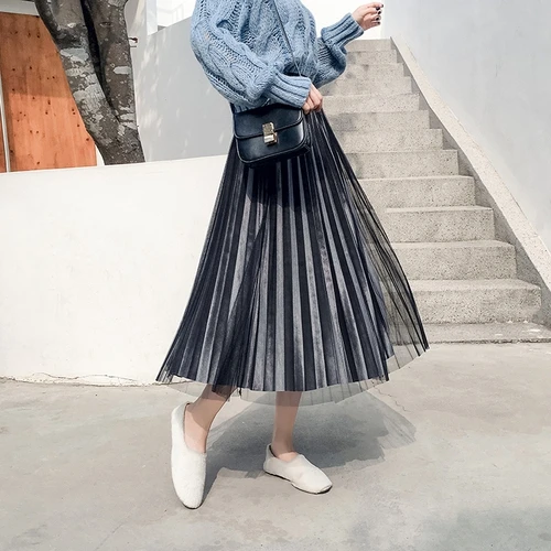 Tingyili Samt Tull Rock Plissee Herbst Winter Lange Rock Schwarz Grau Beige Koreanische Rock Rocke Aliexpress