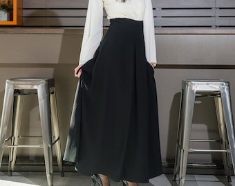 Tea Length Skirt Wool Skirt Womens Skirts Pleated Skirt Black Skirt Winter Skirt Pocket Skirt In Winter Rock Wollrock Faltenrock