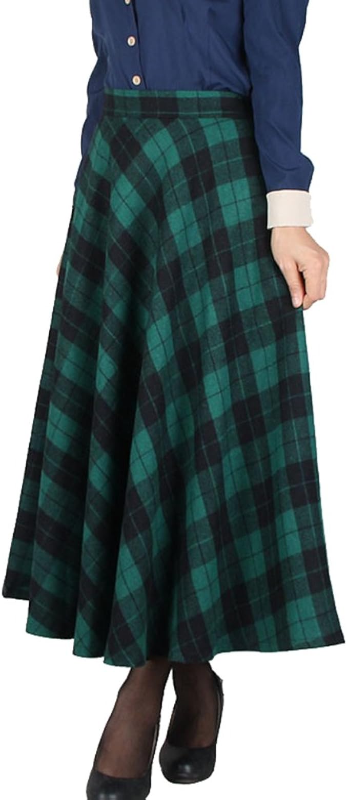 Niseng Damen Vintage Karierter Rock Winter Herbst Tartan Mit Hoher Taille Flared Lang Rocke Amazon De Bekleidung