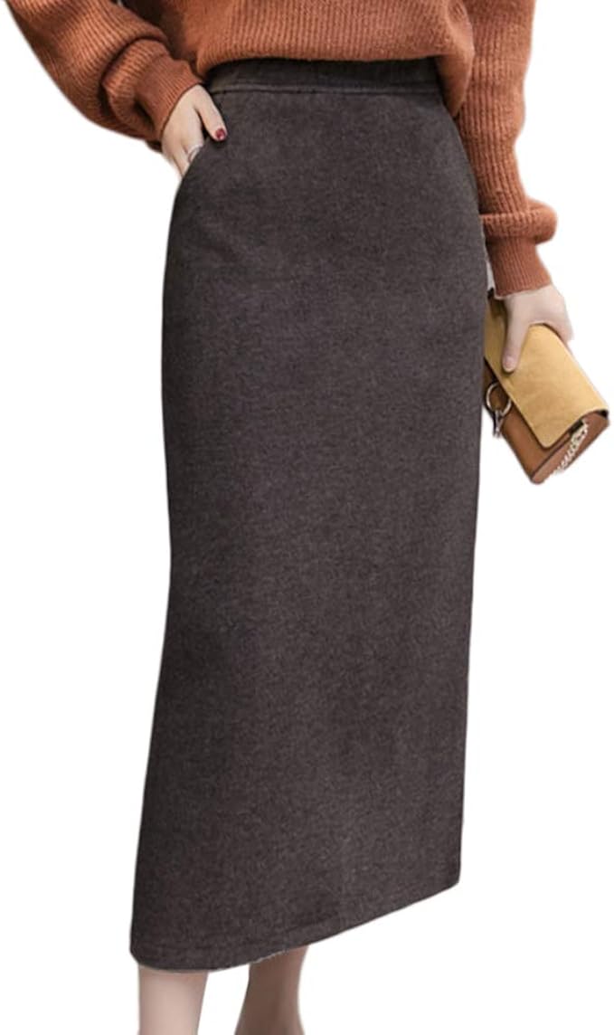 Frauen Hohe Taille Woolen Eine Linie Rock Lange Maxi Winter Rock Verdicken Midirock Amazon De Bekleidung