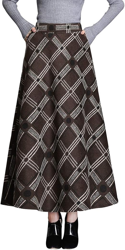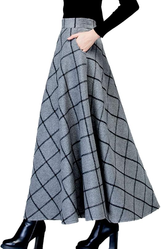 Femiserah Damen Lang Maxi Wolle A Linie Rock Herbst Winter Plaid Rock Grau Gross Amazon De Bekleidung