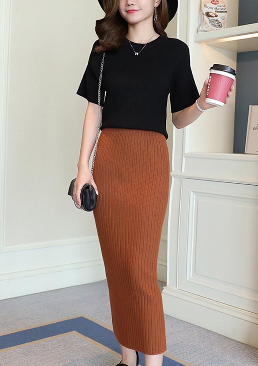 Cheerlife Damen Rock Stretch Einfarbig Bleistiftrock Strickrock Bodycon Rocke Herbst Winter Enge Rocke Lang Bekleidung B077vlh9xd