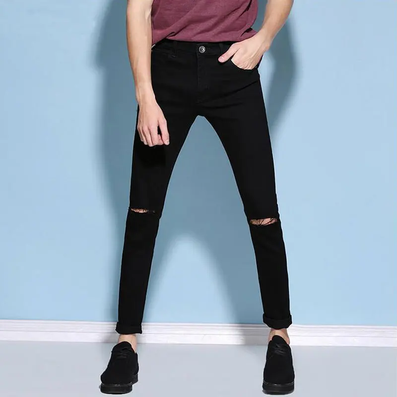 Fashion Skinny Jeans For Men Classic Cotton Denim Slim Fit Ripped Jeans Mens Black Jeans Man Knee Hole Pencil Jeans Pants Jeans Men Black Fashion Jeans For Menjeans For Men Aliexpress