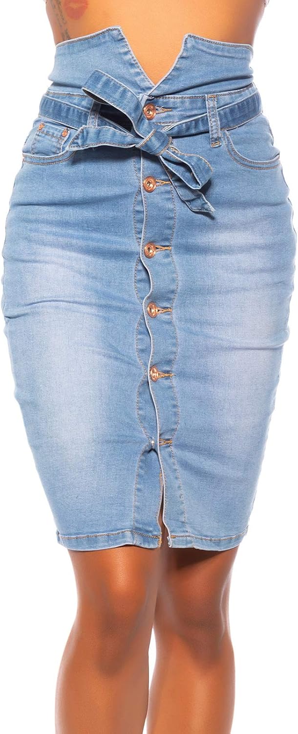 Geilisungren Damen Jeansrock Hohe Taille Knopfe Taschen Bleistiftrock Frauen Slim Fit Knielang Denim Rocke Stretchy Figurbetont Jeans Rock Sommerrock Amazon De Bekleidung