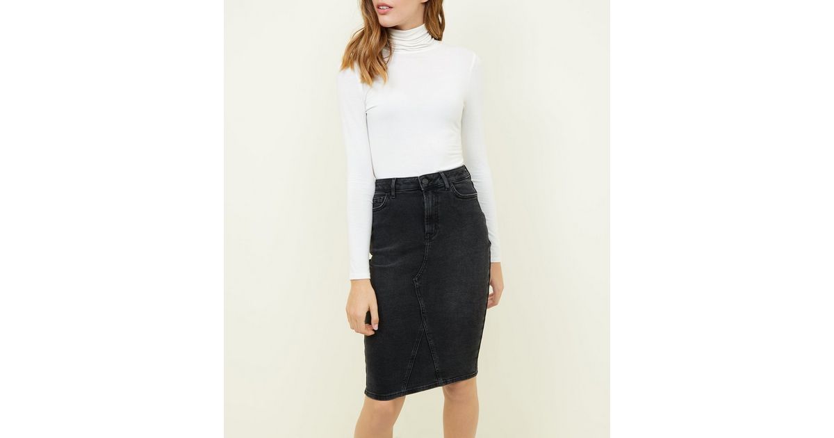 Schwarzer Bleistiftrock Aus Denim In Washed Optik New Look
