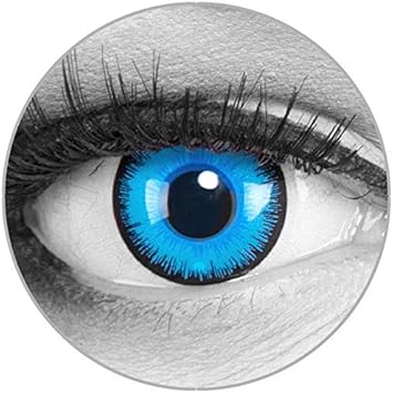 Farbige Uv Kontaktlinsen 1 Paar Blaue Ice Blue Schwarzlicht Glow Neon Farblinsen Jahreslinsen Topqualitat Zu Halloween Fasching Fastnacht Karneval Inkl Kontaktlinsenbehalter Ohne Starke Amazon De Drogerie Korperpflege