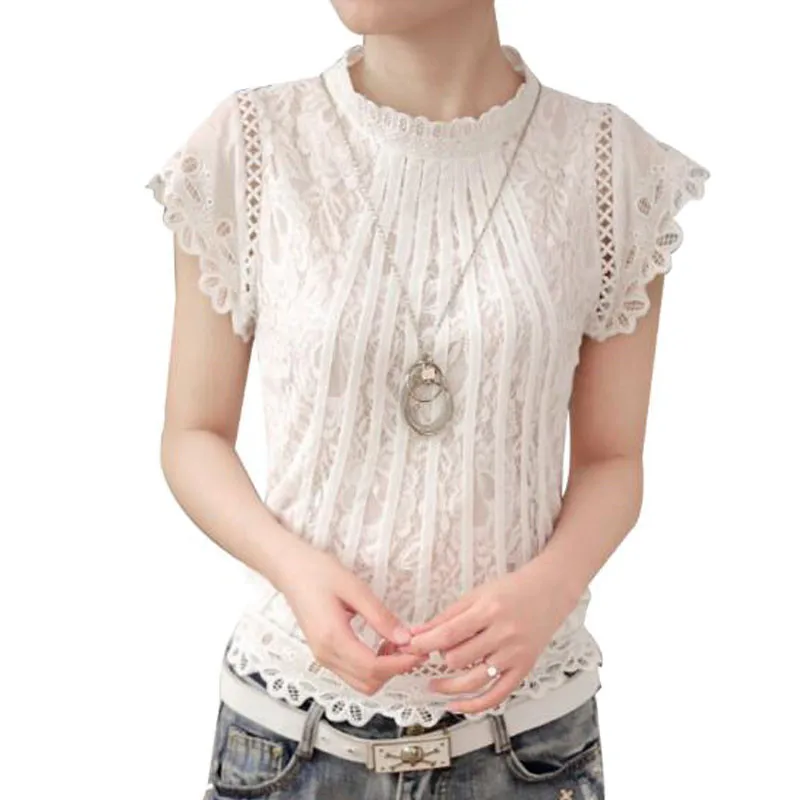 Damen Schwarz Weiss Spitzenbluse Kurzarm Stehkragen Frauen Tops Korean Elegante Patchwork Hakeln Frauen Hemd Plus Grosse Blusa Women Shirts Lace Blouse Short Sleeveswhite Lace Blouse Aliexpress