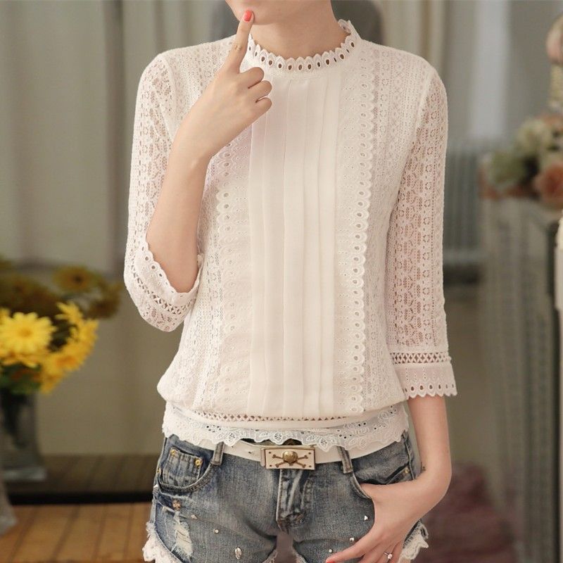 Grosshandel Frauen Herbst Beilaufige Weisse Spitzenbluse 16 Art Und Weise Reiz 3 4 Armel Stehkragen Hakeln Spitzen Sommer Koreanische Hemdkleidung A633 Von Marrisha 13 08 Auf De Dhgate Com Dhgate