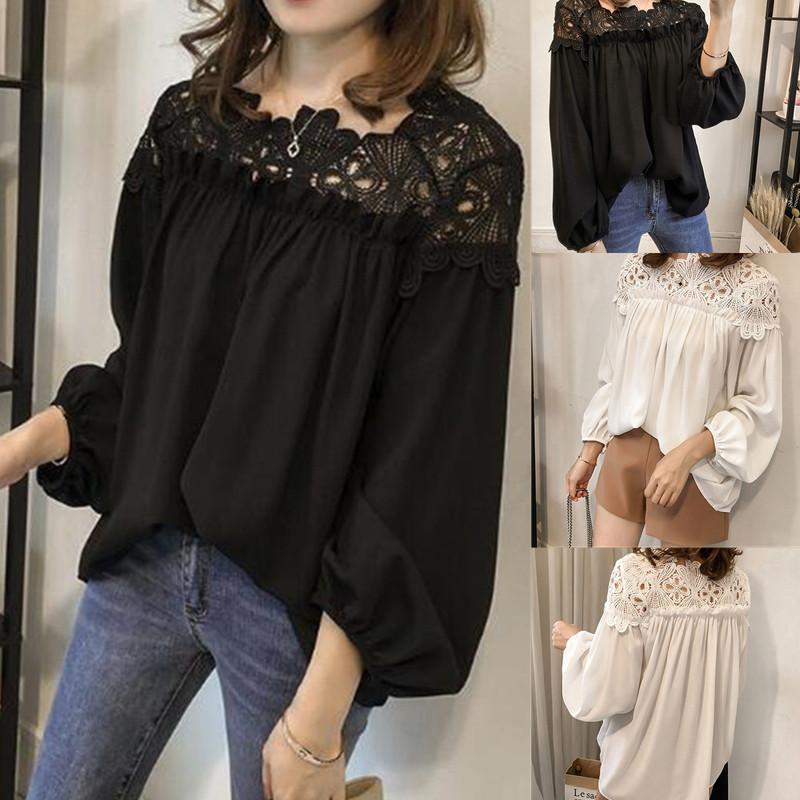 Damen Bluse Longra Damen Chiffon Bluse Spitzen Hemdbluse Tunika Blusen Frauen Festliche Chiffonshirt Langarmshirt Weisse Bluse Mit Spitze Party Oberteile Tops Amazon De Bekleidung