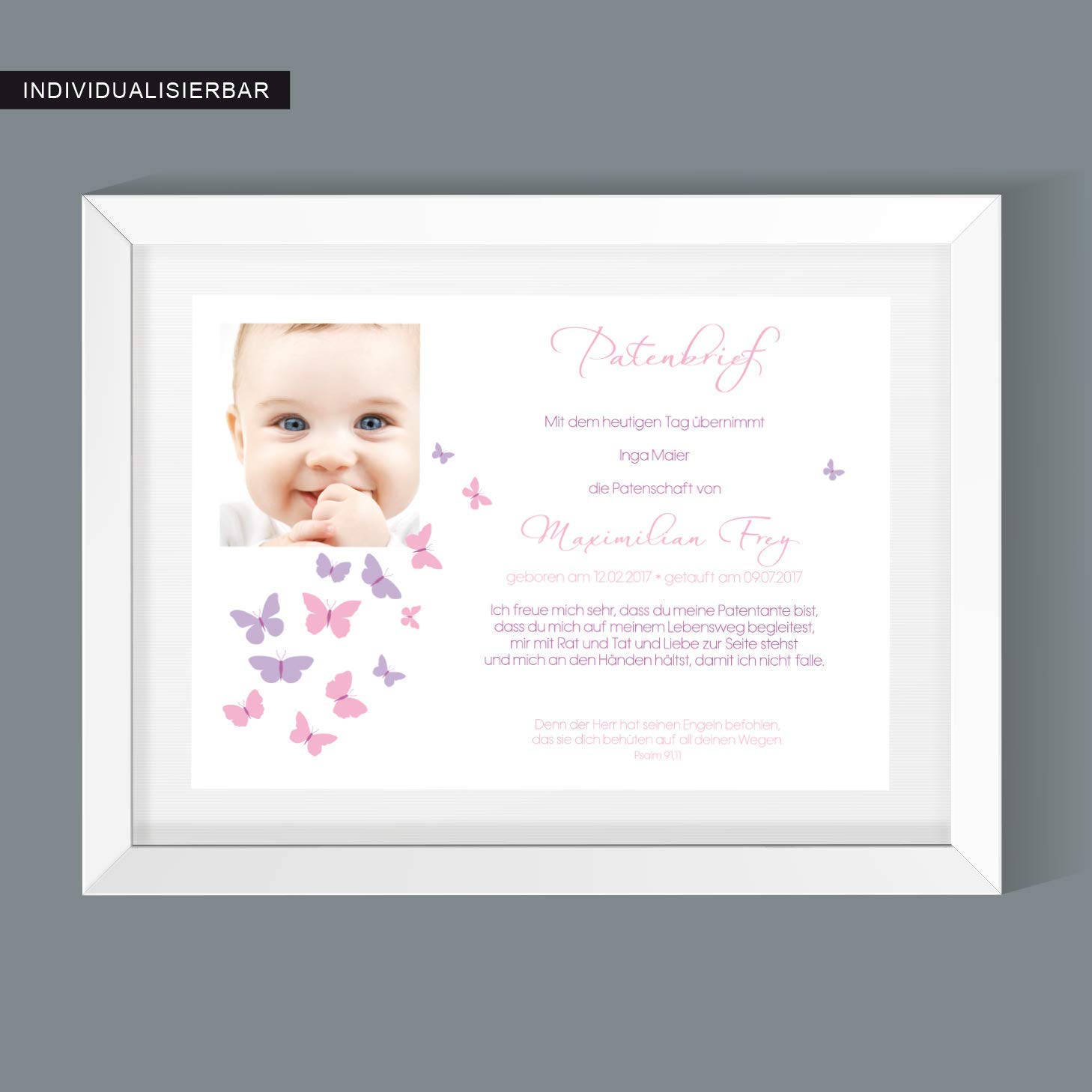 Taufbrief Patenbrief Patengeschenk Geschenke Zur Taufe Taufgeschenk Schmetterling